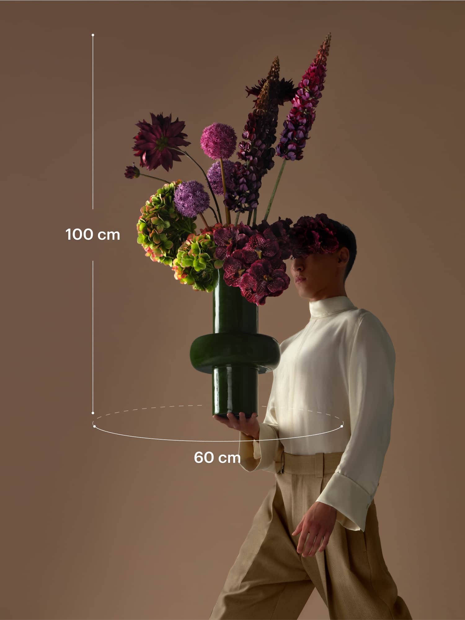 At Bloom & Wolf, we dare to say it: we deliver only the very highest quality silk flowers. Each bloom is handcrafted, carefully selected by our creative team, and transformed by our master florist into the most stunning silk bouquets. Although, silk bouquets? How about ‘floral design objects’? The advantage of silk flowers is their independence from water. This allows us to create a surreal floral world with an allure you never thought possible with silk.
