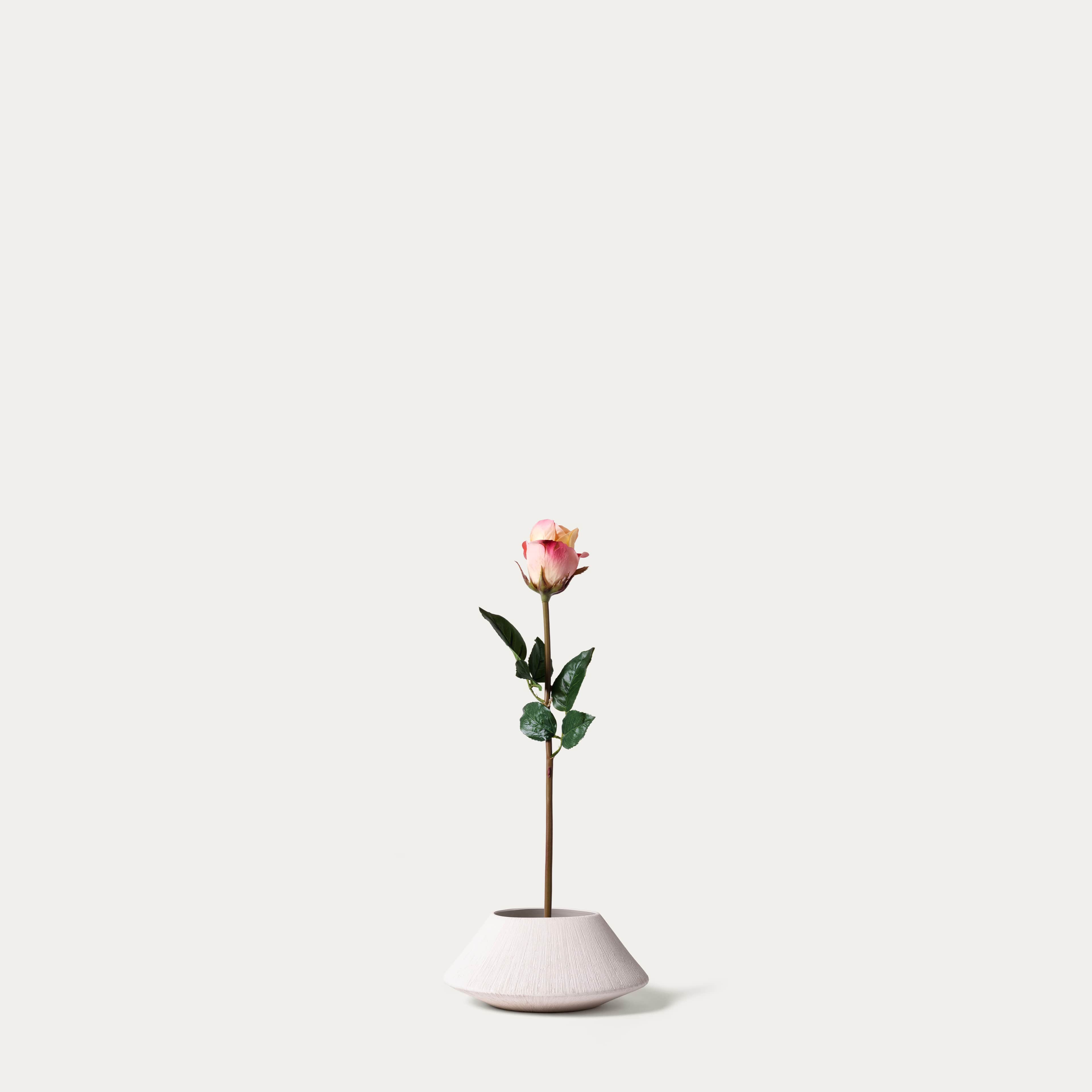 Cette rose rose très pâle en soie real-touch possède des pétales veloutés et une teinte douce et romantique. Sa couleur délicate et sa silhouette naturelle apportent une touche élégante et intemporelle à toute composition.