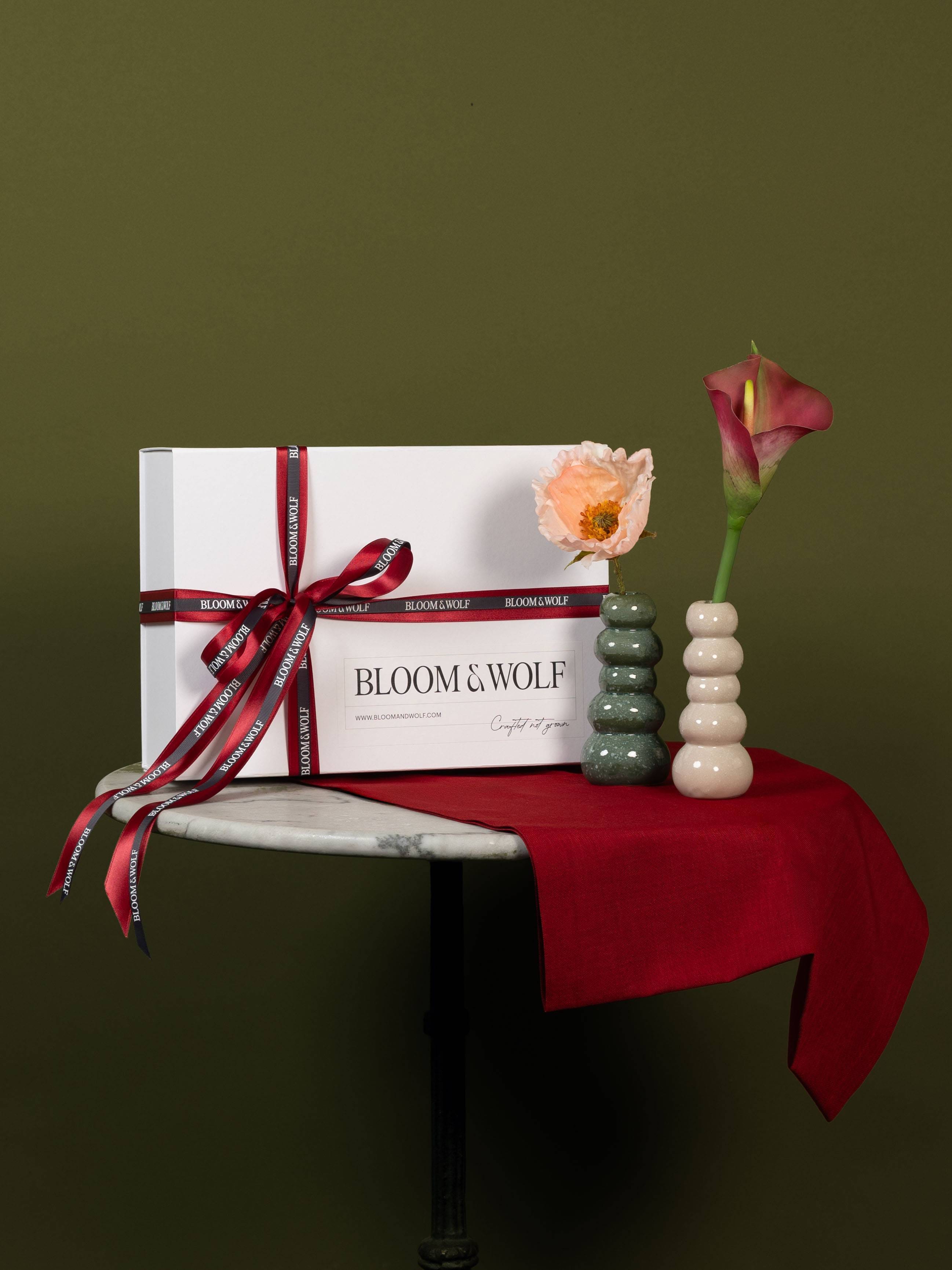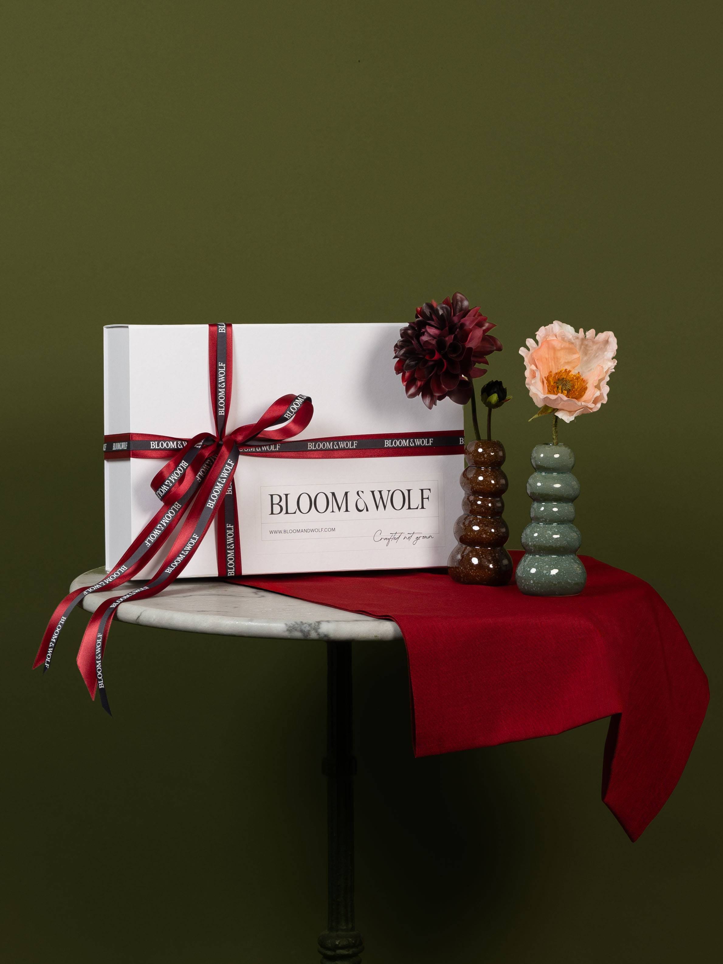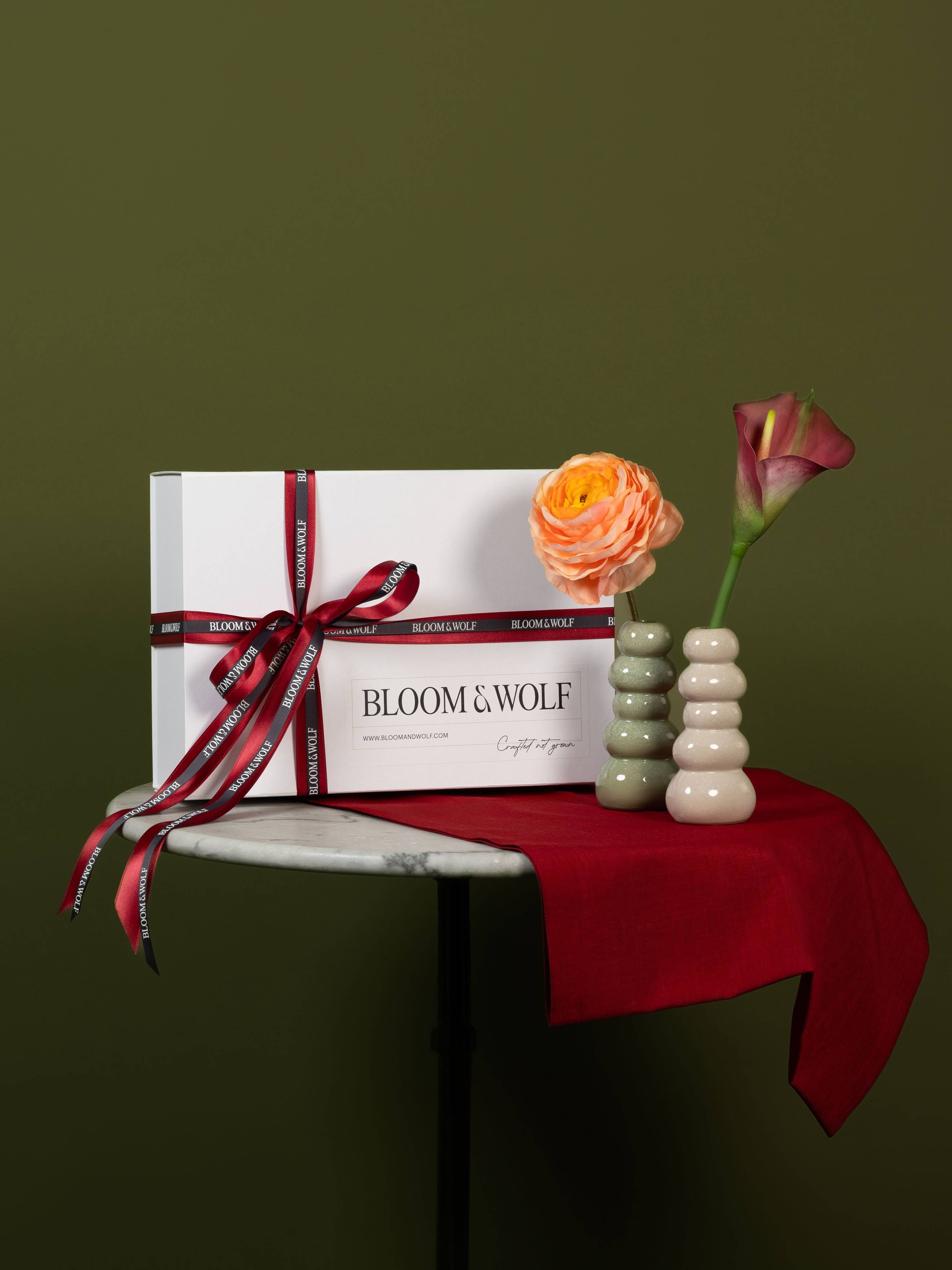 Op zoek naar het perfecte cadeau voor de feestdagen? Ga voor iets extra's met de speciale Bloom & Wolf cadeaubon-set. Deze is inclusief een schitterende gouden bloem en ons signature parfum.