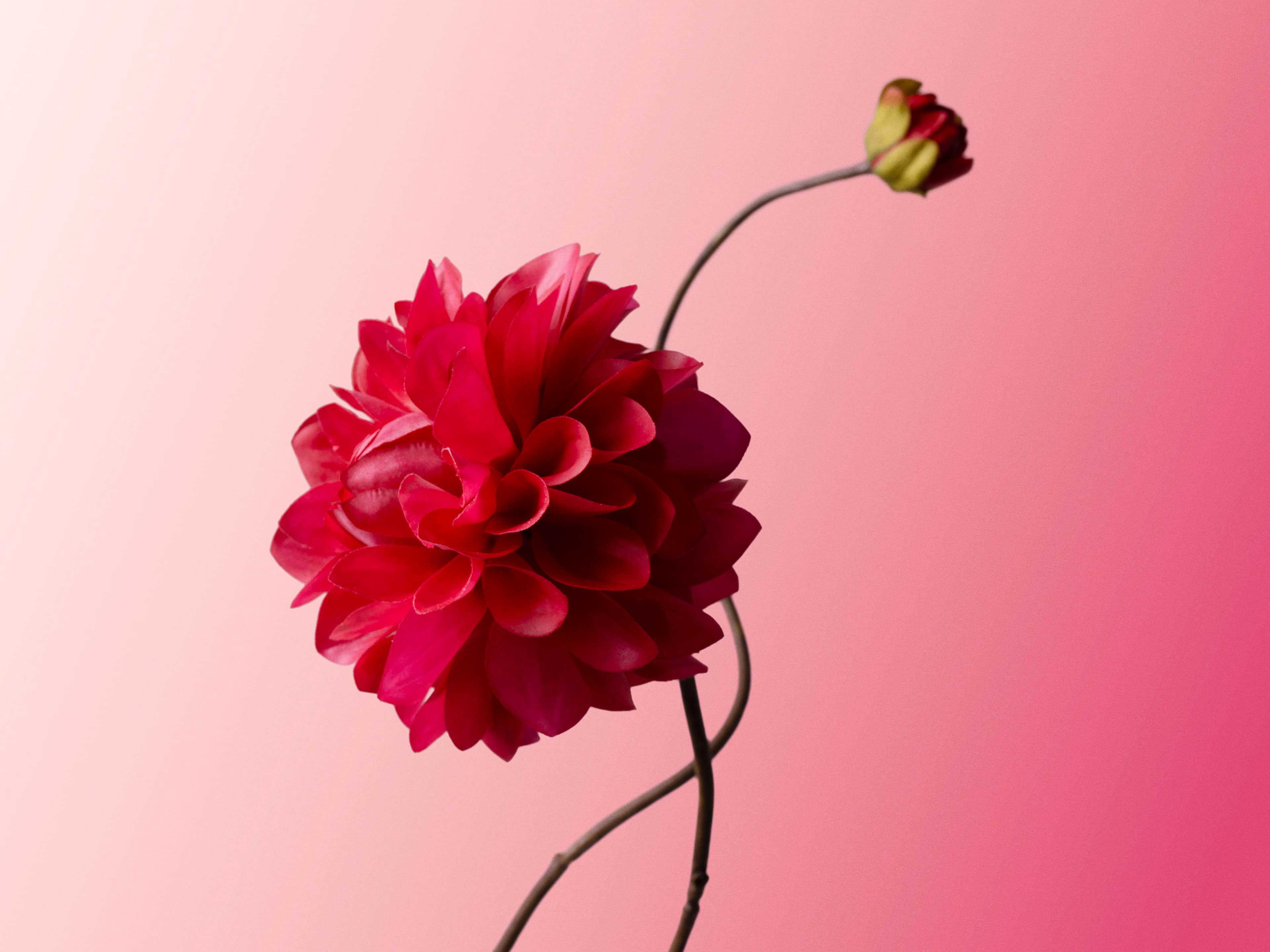 Een speels veldboeket waarin levendige kleuren samenkomen met een onverwachte vaaskeuze: een diepblauwe stenen vaas. Blauwe delphinium, gele dahlia en roze klaproos zorgen voor een dynamisch contrast.
