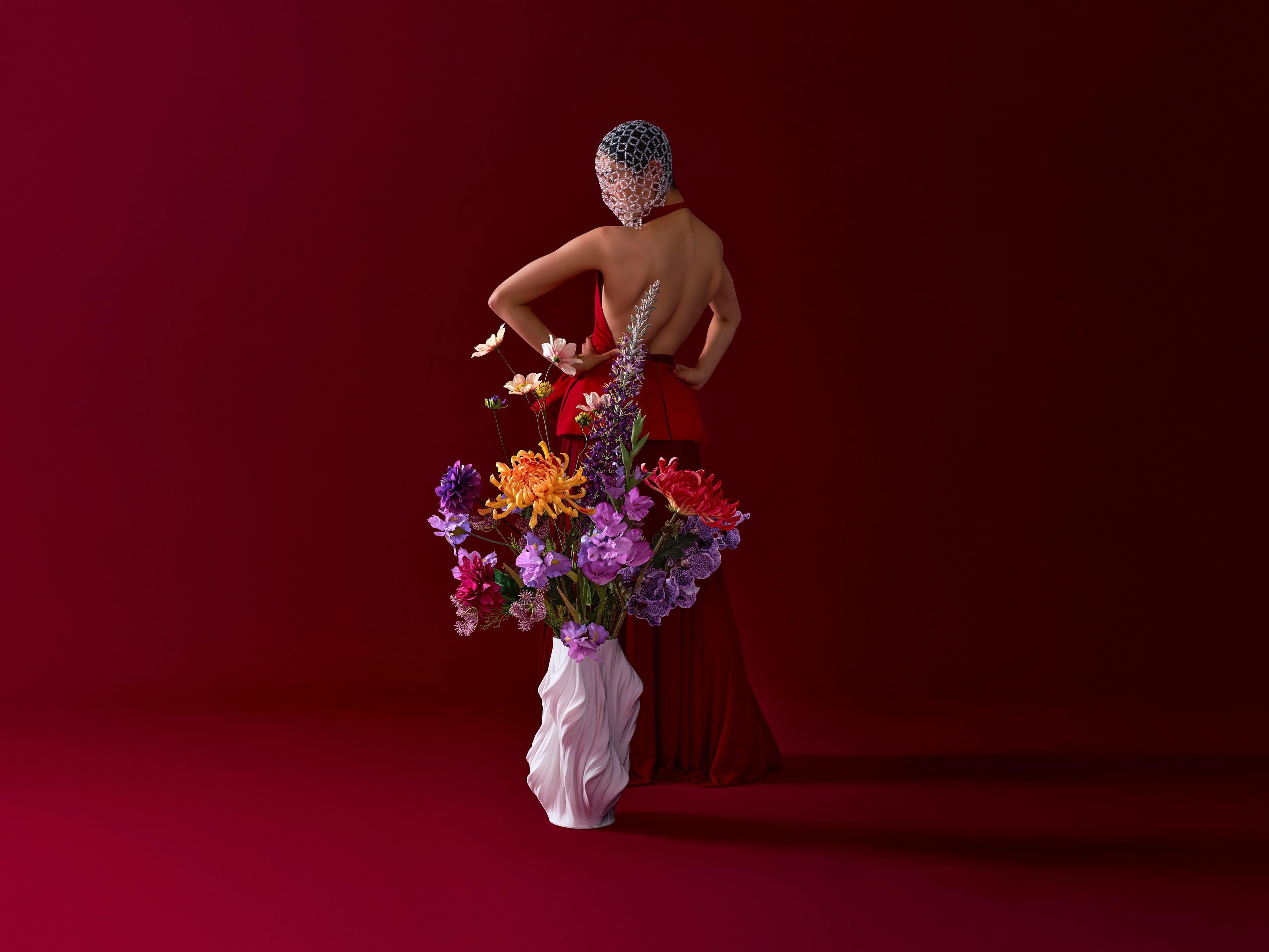 Krachtig XL veldboeket met herfstkleurige chrysanten, paarse real-touch iris, vanda, gladiool, dahlia en delphinium, gecombineerd met paarse zijden eremurus, een okergele dahliatak en zachtroze dille. Dit boeket wordt geleverd met ons gratis bloemparfum.