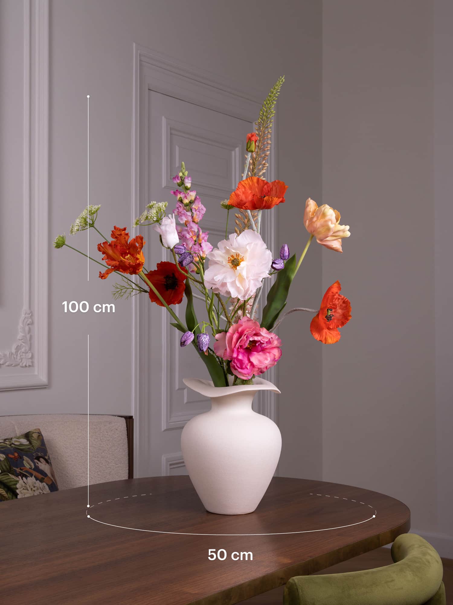 De hoogste kwaliteit zijdebloemenboeketten vind je bij Bloom & Wolf. Wij kopen enkel bloemen van de hoogste kwaliteit in en de boeketten en boeket-vaas combinaties worden samengesteld door onze meesterbloemist.