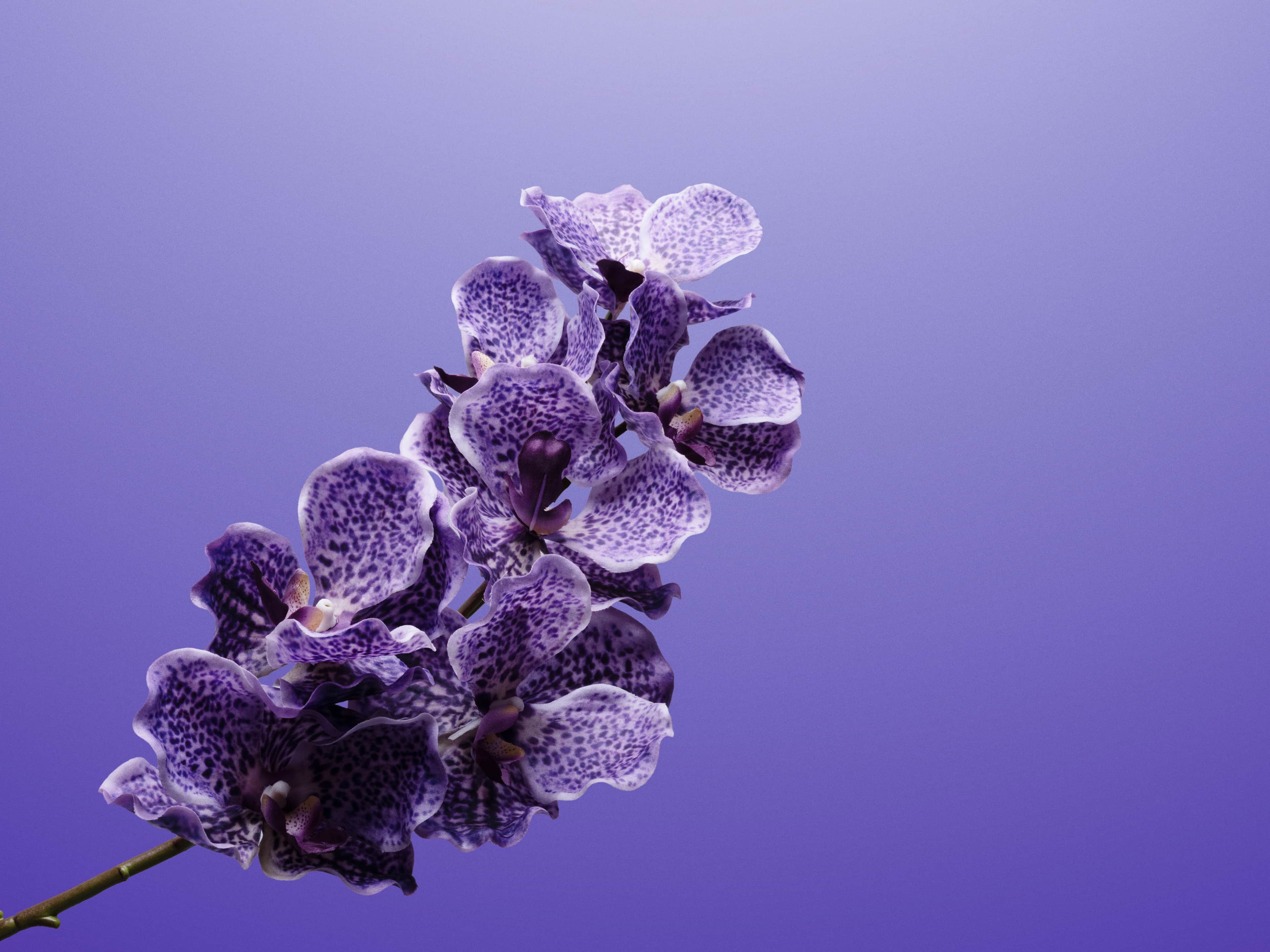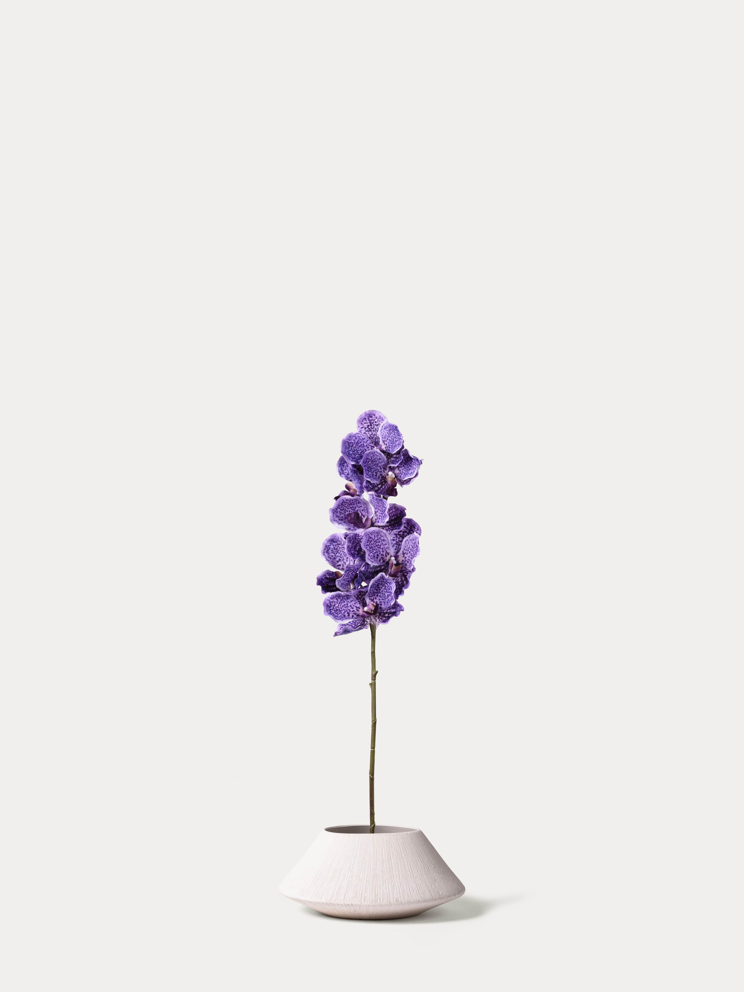 Prachtig sculptuur in paarstinten met real-touch zijden bloemen zoals hortensia, iris, eremurus, allium en vanda. Dit boeket wordt geleverd met ons gratis bloemparfum.