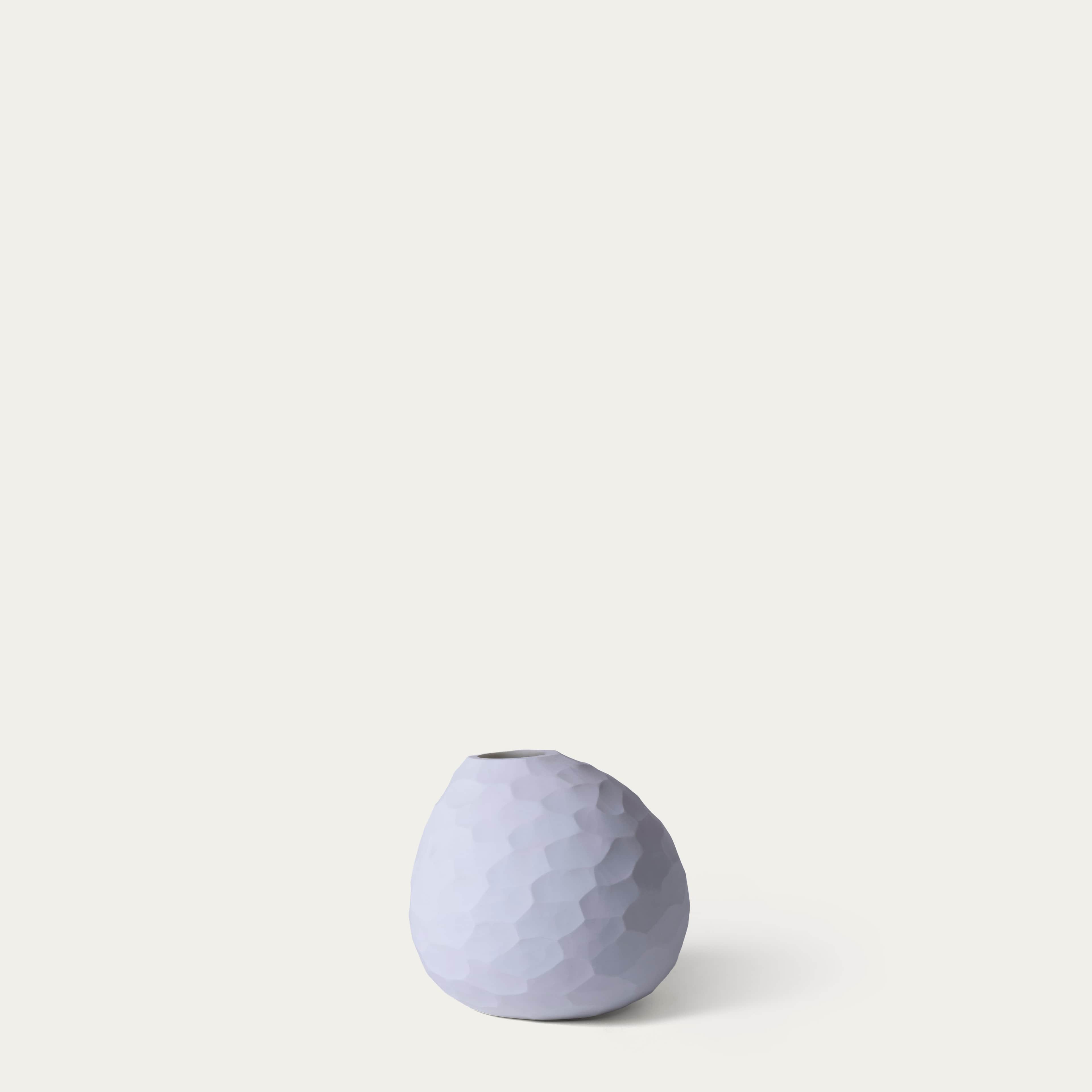 Een witte keramieken vaas met een subtiel gefacetteerd oppervlak. Minimalistisch en speels; een rustige basis die je boeket een verfijnde textuur geeft.